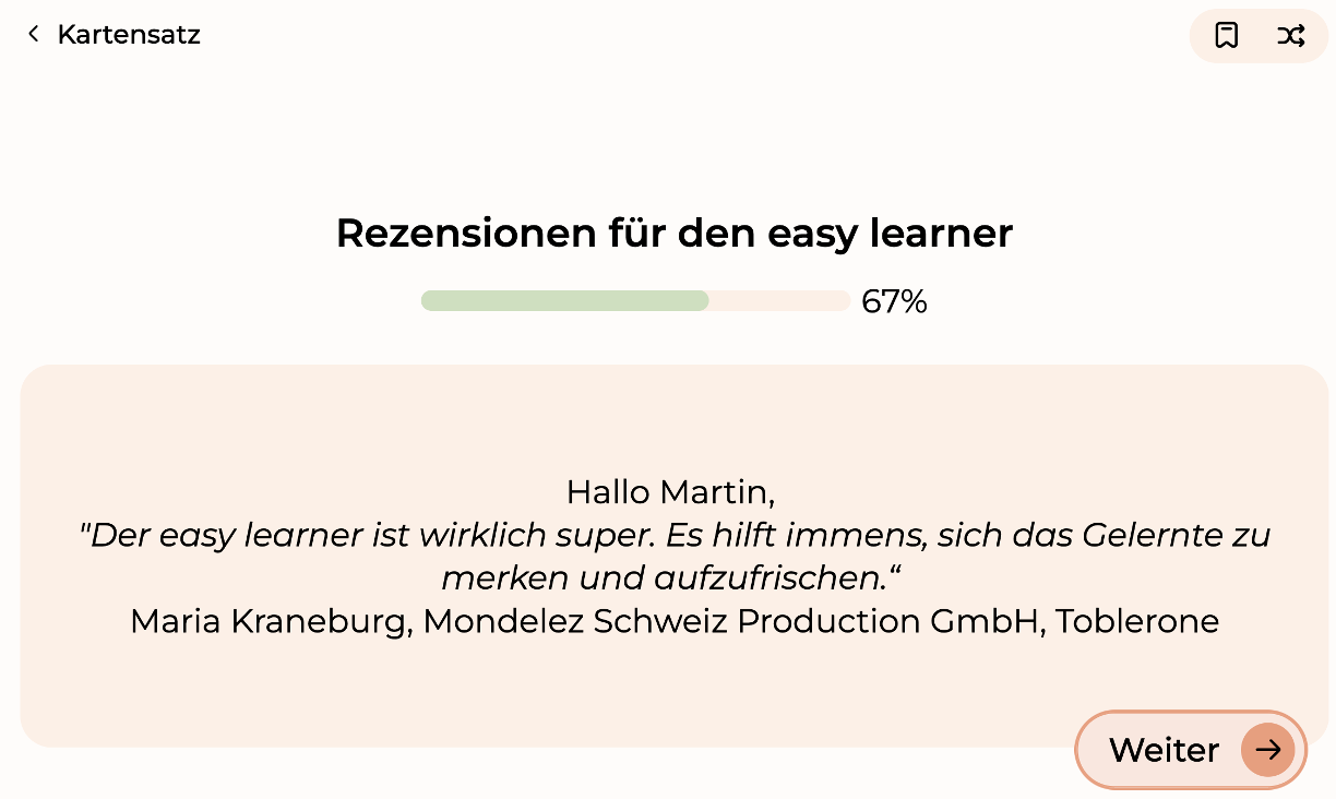 Unterstützen Sie Lernende mit kurzen Lern- und Quizimpulsen, festigen Sie Inhalte langfristig und machen Sie Lernfortschritt sichtbar.